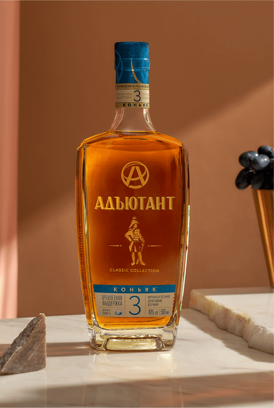 Создание коллекции коньяков Адъютант навеяно историческим образом офицера, олицетворяющего доблесть, честь и благородство — качества, достойные гордости и уважения.