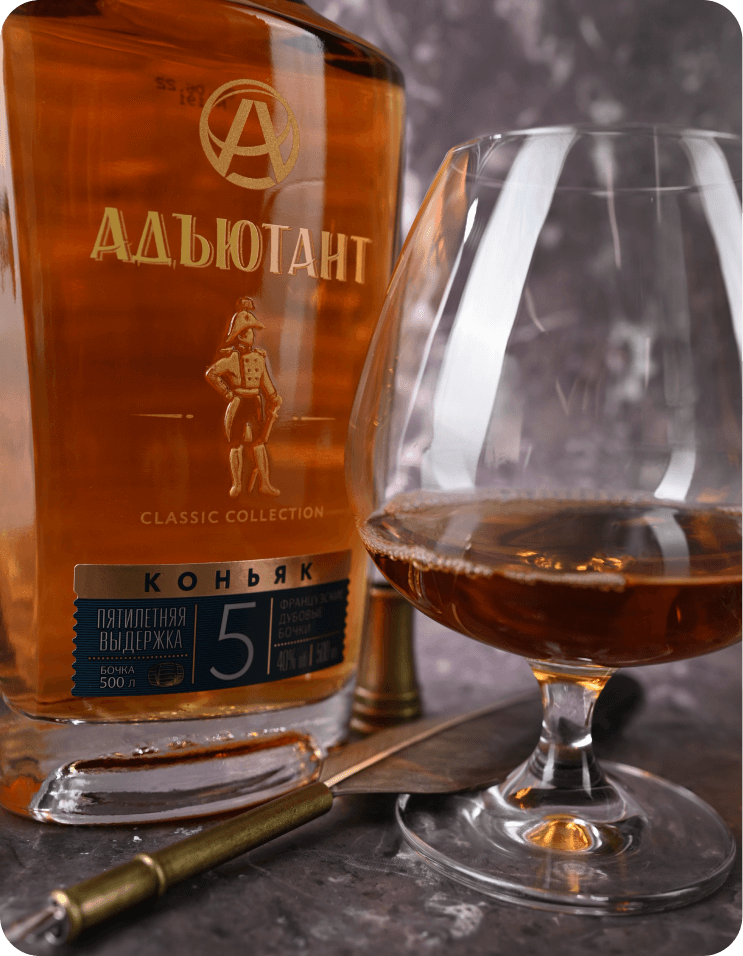 Adjutant 干邑白蘭地系列的創作靈感來自一位軍官的歷史形象,他像徵著勇氣、榮譽和高貴,這些特質值得自豪和尊重。